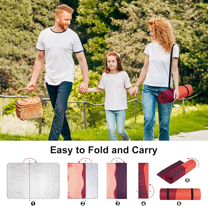 - Easy to Pack: Once your outdoor fun is over, you can easily pack up the picnic blanket using the included carrying strap, this practical feature makes it simple to fold, secure, and carry the outdoor blanket, allowing for easy transport to and from your favorite outdoor locations, no more struggling with bulky, awkward blankets