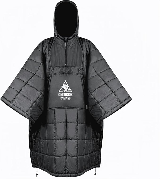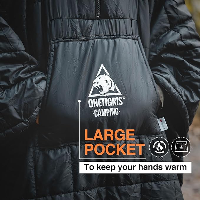 OneTigris Camping Blanket Honcho Poncho with 3M Thinsulate Insulation,Wearable Sleeping Bag Poncho for Camping Large Ultralight Water-Resisitant Warm Wearable Blanket for Outdoor Camping,Hiking