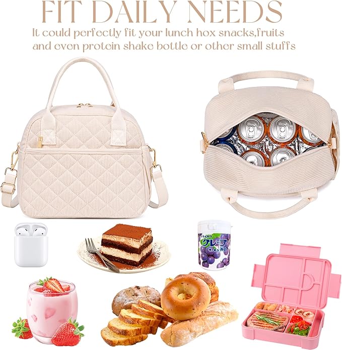 - 【FASHION ITEMS】The front of this lunchbox is designed with quilted. Simple and elegant design is a great item to pair with different clothes every day. It can blends in with your attire and isn’t too flashy or tacky. This bag looks good with purse and briefcase.