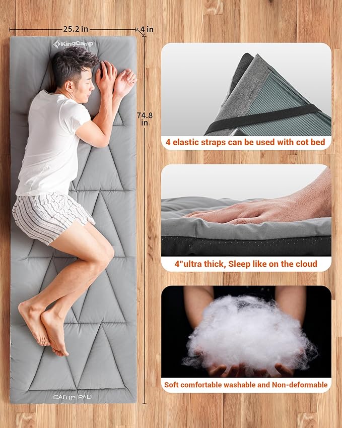 KingCamp Cot Pad Topper for Camping, Soft Warm Non-Slip Cot Mattress, Comfortable Lightweight Sleeping Mat for Outdoor & Indoor, Picnic, Hiking, Backpacking, Yoga