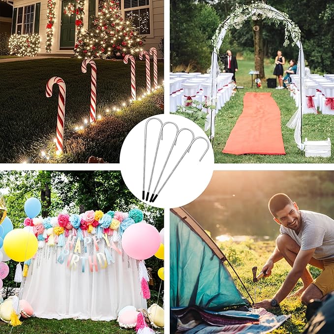 - Multiple Applicability: The yard stakes can be used as landscape fabric stakes, turf stakes, tent stakes, fence stakes, etc. Or as ground stakes for plants, outdoor decorations, fixing balloons, lights, inflatable dolls for festivals or party.