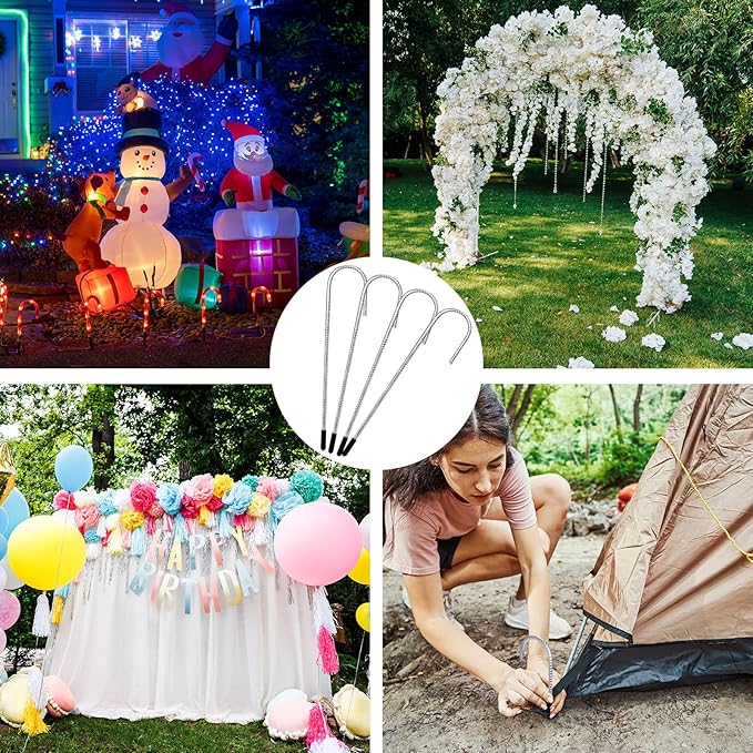 - Multiple Applicability: The yard stakes can be used as landscape fabric stakes, turf stakes, tent stakes, fence stakes, etc. Or as ground stakes for outdoor decorations, fixing balloons, lights, inflatable dolls for festivals or party.
