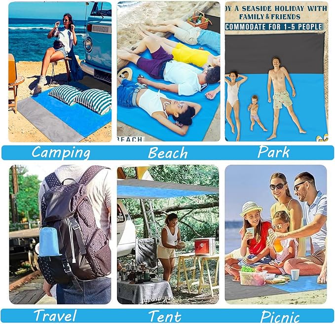 - ✔SUPERIOR QUALITY- This sandproof and waterproof beach blanket is designed to keep you clean and dry, no matter the terrain. Measuring 79" x 55", it’s perfect for 1-4 people and folds compactly for easy transport. Made with high-quality materials, it’s a must-have beach essential for any outdoor adventure. Available in multiple colors to match your style