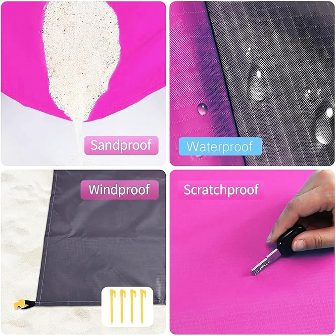 - ✔SUPERIOR QUALITY- This sandproof and waterproof beach blanket is designed to keep you clean and dry, no matter the terrain. Measuring 79" x 55", it’s perfect for 1-4 people and folds compactly for easy transport. Made with high-quality materials, it’s a must-have beach essential for any outdoor adventure. Available in multiple colors to match your style