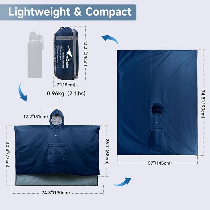 - 【3-in-1 Versatility】This innovative sleeping bag, blanket, and poncho combo is perfect for outdoor camping, relaxing, or on-the-go use.