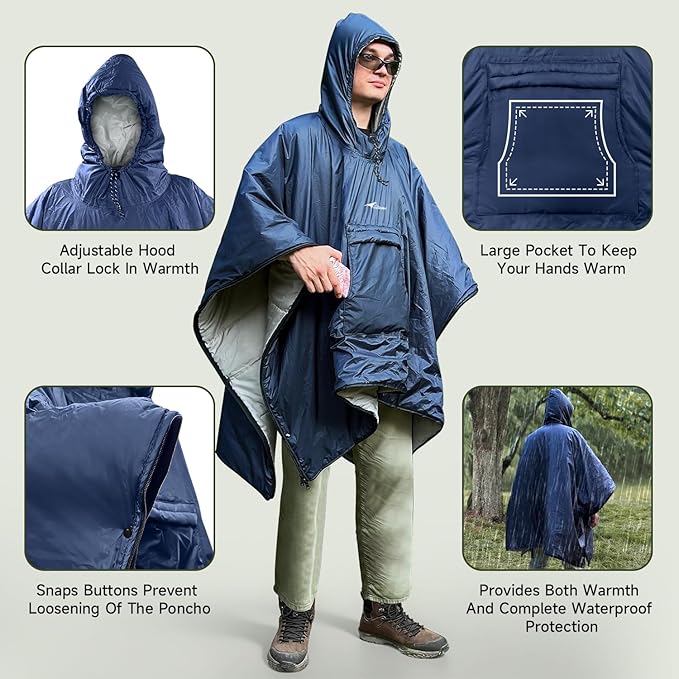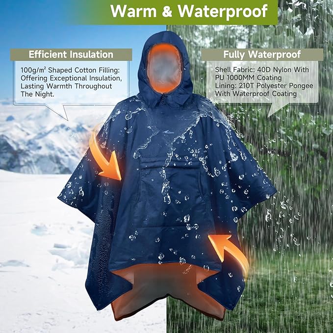 - 【Custom Fit for Warmth】The poncho is designed with an adjustable hood and secure cuffs, allowing for a personalized fit that maximizes comfort. Its unisex style makes it an ideal gift for outdoor enthusiasts of all ages.