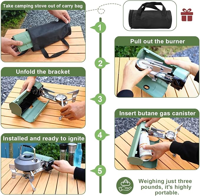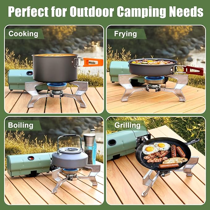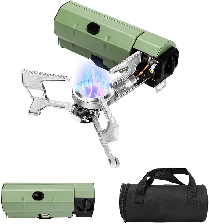 - [Foldable & Compact Design] - Camping stove folds into a compact size, fitting easily into the included storage bag. Lightweight and portable, it’s ideal for camping, hiking, backpacking, and emergency use.
