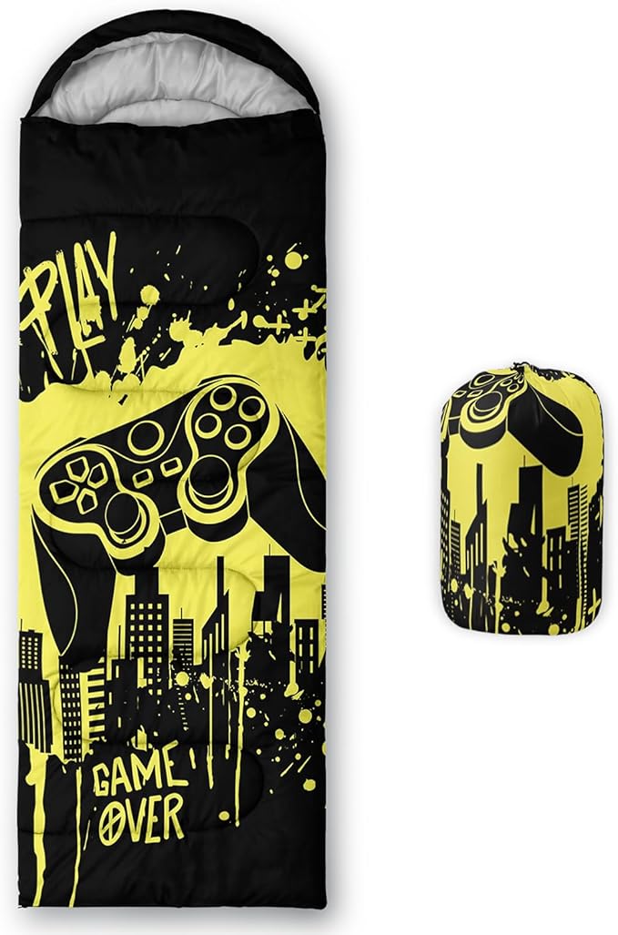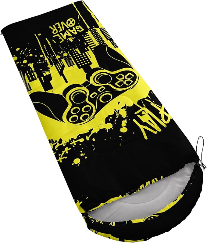 - Unique Gaming Design:This Gaming pattern sleeping bag is made of 3D digital printing with vibrant colors and patterns,size: 31W x 90L inches,temperature range: 32℉-77℉ (0℃-25℃),it also also have a weather resistant waterproof design to keep you warm and prevent you from any dampness,can be used in 3 seasons