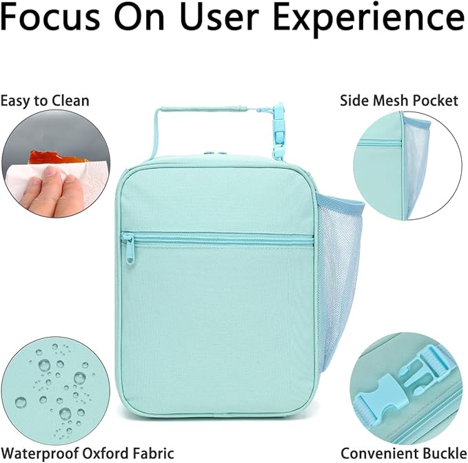- Easy to Clean: Featuring a wipeable interior and the stylish "lunch" logo,this lunch bag is designed for convenience.Whether you’re on the go or at your desk,spills and messes are no hassle—just wipe clean and carry on