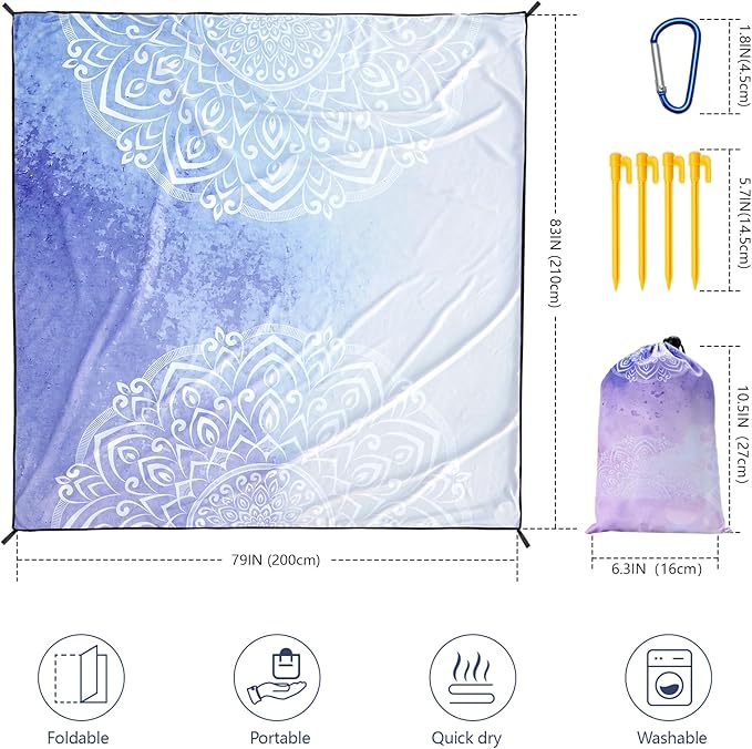 - 【Attractive Pattern Design】 Unique mandala, boho style and bold contrasting color beach mats will make you stand out on the beach! Enjoy the beach sunshine and leave unforgettable memories!