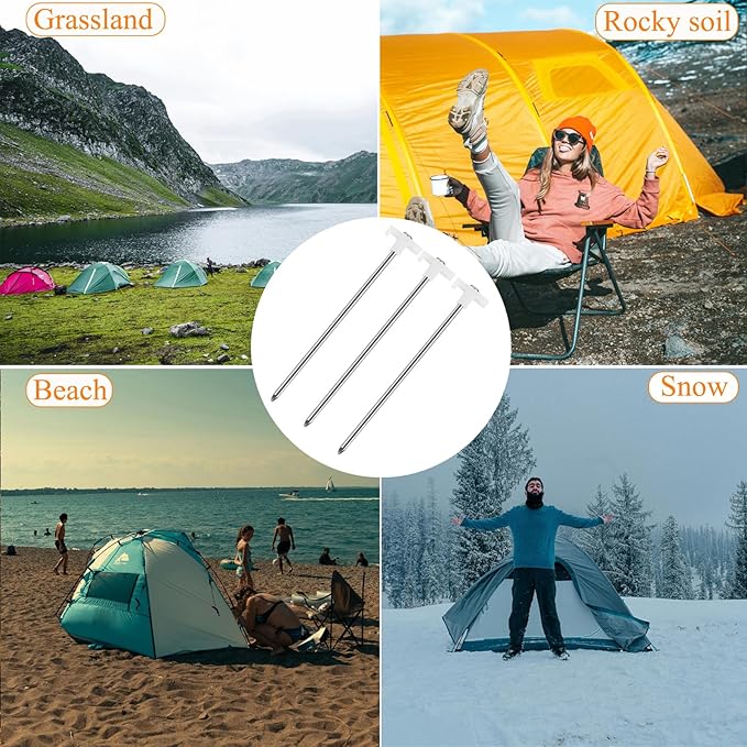 - Heavy-Duty Construction: Crafted from premium, rust-resistant galvanized metal, these stakes are designed to withstand significant pressure without bending or breaking easily. They offer unparalleled durability and versatility, ensuring your tent stays securely anchored, even on windy nights