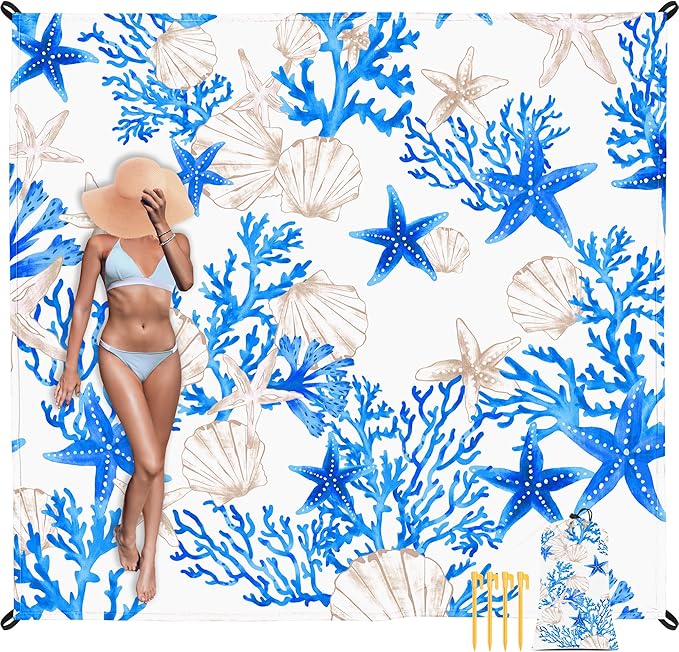 - Ready for Summer: Gear up for summer by expanding your array of beach, camping, hiking, and picnic accessories. Relax in style with our blue beach blankets featuring coral, shell, and starfish patterns, adding a touch of ocean charm to your beach time