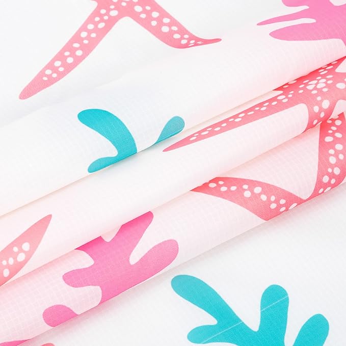 - Coastal Starfish Design – Easy & Elegant: Drift away with our watercolor-inspired starfish pattern, where soft pink and blue hues dance across an off-white canvas like sunlight on sand. This breezy, modern design brings seaside charm to every outing—and when the adventure’s over? Just toss it in the wash. Beach beauty, zero hassle.