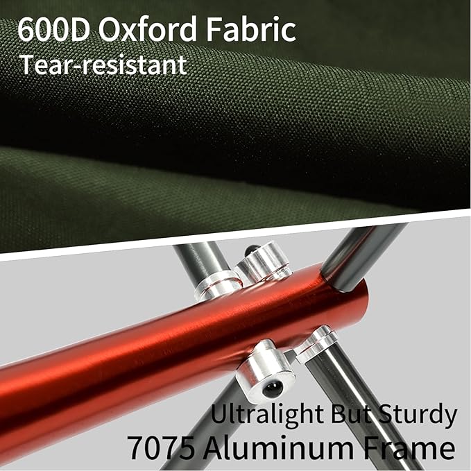 - 7075 Aluminum Frame & 600D Oxford Seat Fabric: The SHALLWE folding camping chair features a 7075 aluminum frame, offering both strength and portability. Weight: 3.19 lbs (1.45 kg), Max Load: 300 lbs, making it a heavy-duty camping chair suitable for adults. The 600D Oxford seat fabric ensures enhanced durability and comfort
