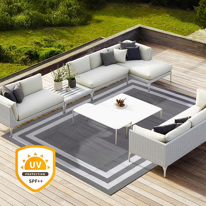 - Waterproof & UV-Resistance:Crafted from waterproof plastic straw and UV-stabilized materials that prevent fading and UV damage.this outside rug is built to withstand outdoor elements