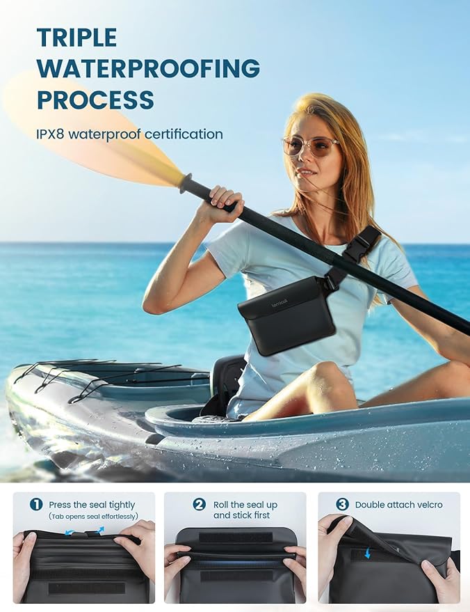 - Effortless Double Velcro Waterproof : Lamicall 2025 updated brings better using experience. The NEW tabs make opening the waterproof bag even easier. With the double velcro and three-zipper closure system, it ensures a perfect seal to keep your phone and valuables safe and dry. The super waterproof seal allows you to enjoy boating, kayaking, fishing, hiking, surfing, crusing without worrying about water and dust seeping in.