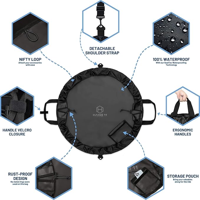 Hang 11 Wetsuit Changing Mat Bag - Surf Changing Mat with Shoulder Strap, Wetsuit Bag Waterproof, Keeps your Wet Suit & Car Clean, Surf Change Gear, Surfing Accessories, Surfing Gifts