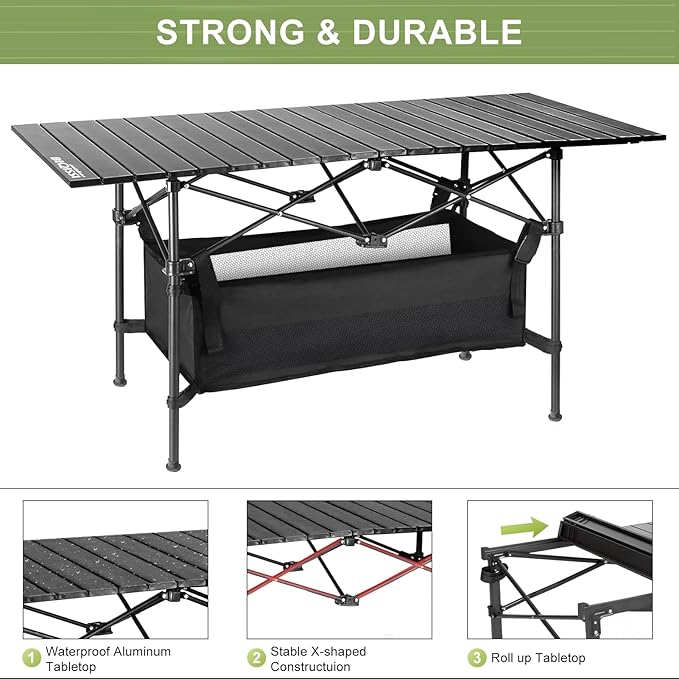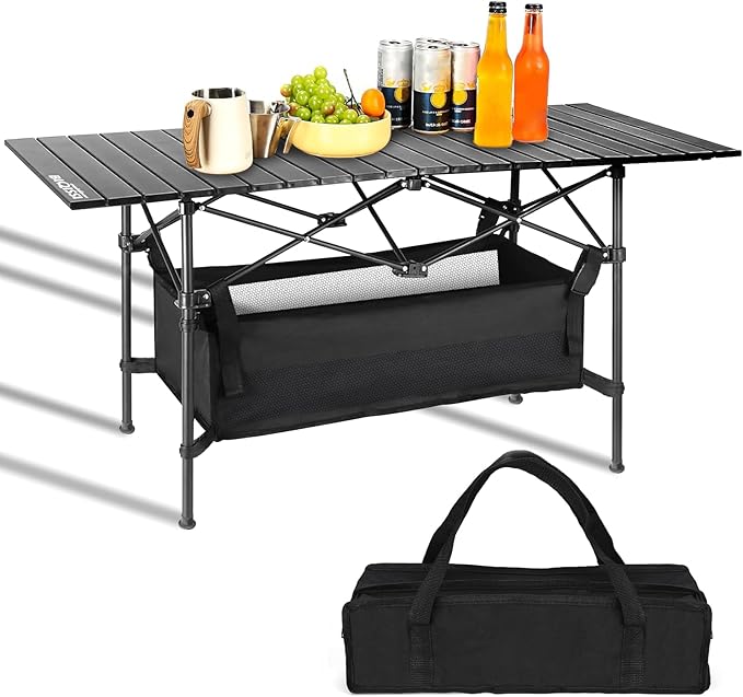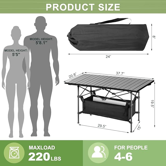 Folding Camping Tables that Fold Up Lightweight,Aluminum Roll Up Camping Table for 4-6 Person Camp Table with Large Storage and Carrying Bag for Outdoor, Picnic, Backyards, BBQ, Beach, 220 Lbs