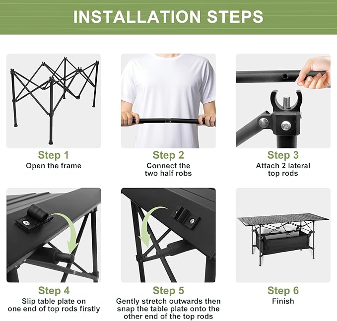 - Portable and Easy to Install: The camping tables that fold up lightweight features a folding design, allowing it to be quickly and easily set up or folded without tools, saving you time and space. The folded size is 24"L x 8"W x 8.3"H. After folding, store it in the carrying bag for convenient outdoor transport and storage; it can easily fit in the back of a car, RV, or motorcycle.