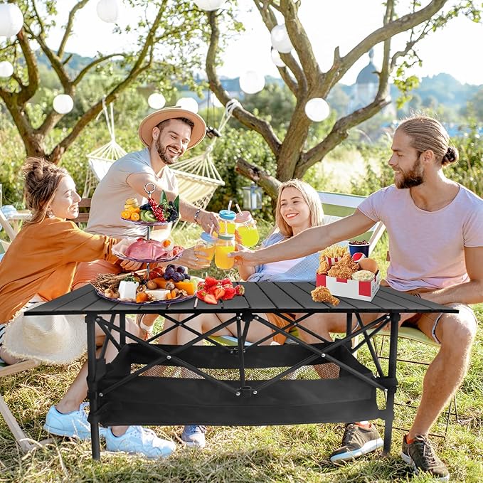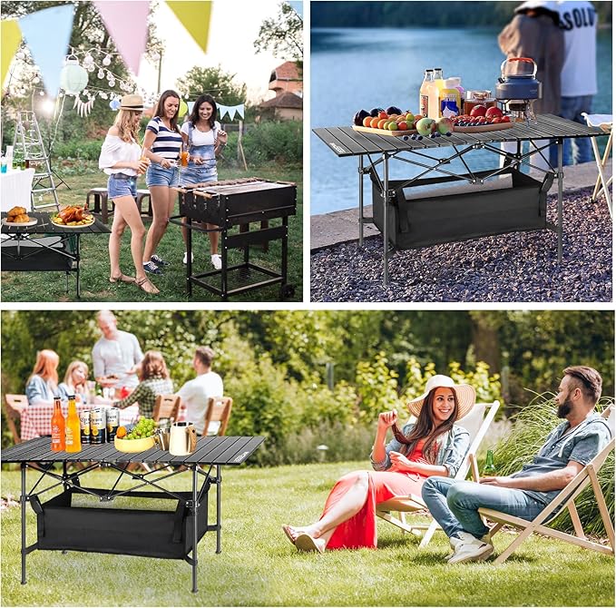 - Versatile and Multi-Use: Ideal for a wide range of activities, from camping and hiking to beach days, BBQs, picnics, or even as an outdoor workstation. The camp table with storage is also perfect for dining, playing games, or as a portable surface for laptops or drinks.