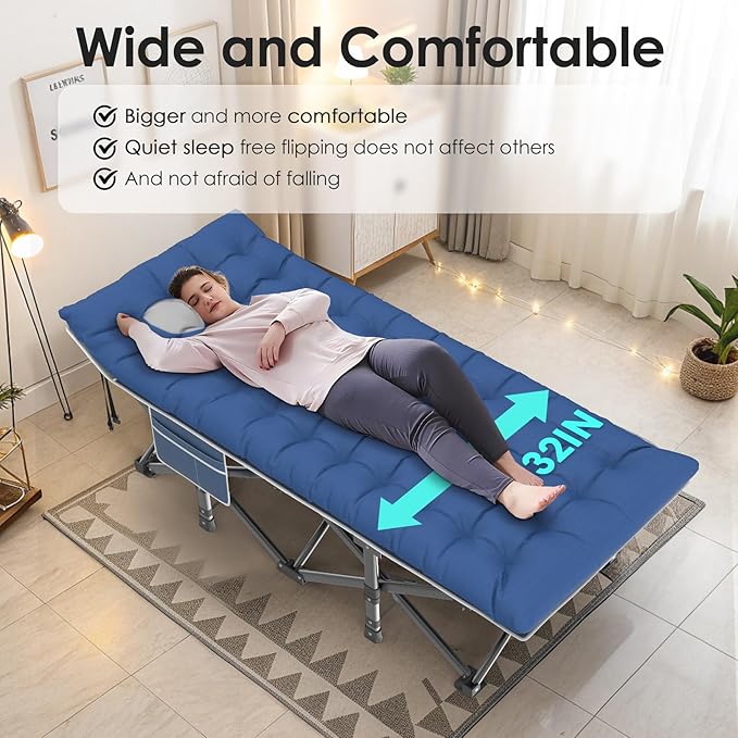 Suteck Camping Cot, 32In XXL Folding Camping Cot Heavy Duty Sleeping Bed for Adults 1200D Double Layer Oxford Cots for Camping W/Pilllow Mat Carry Bag for Home Office Travel 500lbs