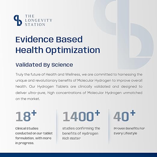 - Validated by Science: The Revolutionary Health Promoting benefits of Hydrogen are validated by over 1400 clinical studies demonstrating why Hydrogen Rich Water is uniquely therapeutic. The vast benefits include improved cellular health and energy, neutralization of oxidative stress and free radicals, reduction in inflammation, enhanced focus and mental clarity, improved athletic performance and recovery AND Anti-Aging effect; not to mention Hydrogen can treat many disease states.