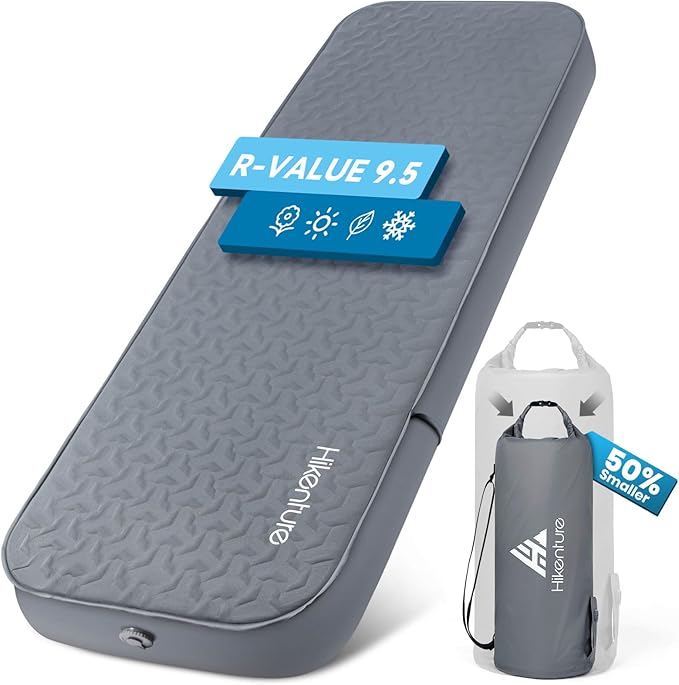 Hikenture 4" Thick Self Inflating Sleeping Pad, Ultralight Foam Camping Mattress, 9.5 R-Value Insulated Sleeping Mat with Pump Sack, Portable All Season Camping Pad for Tent, Car, Cot