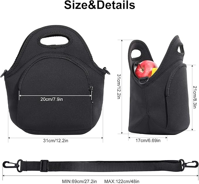 Neoprene Lunch Bag, Thermal Insulated Lunch Tote Bag with Detachable Shoulder Straps, Lightweight & Reusable Lunch Bag for Women Men
