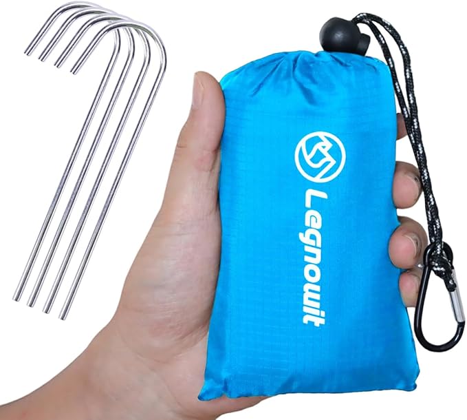 - High-quality Fabric & Durable -Our picnic pocket blanket is made of quality 210T polyester,our pocket tarp is softer and skin-friendly, no plastic feeling, and less noise during use, suitable for adults and kids. There are pockets at the 4 corners, and the loops are made of paracords with reinforced sewing. The four included metal stakes make this outdoor pocket blanket stronger and more durable in windy days.