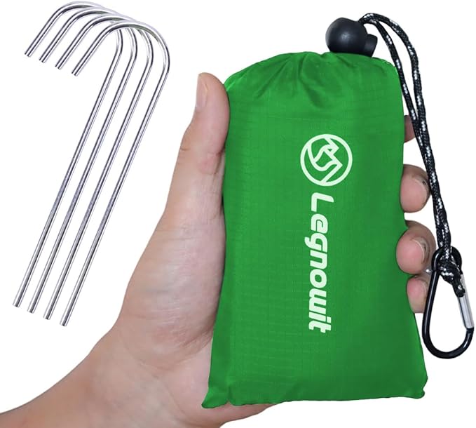 - High-quality Fabric & Durable -Our picnic pocket blanket is made of quality 210T polyester,our pocket tarp is softer and skin-friendly, no plastic feeling, and less noise during use, suitable for adults and kids. There are pockets at the 4 corners, and the loops are made of paracords with reinforced sewing. The four included metal stakes make this outdoor pocket blanket stronger and more durable in windy days.