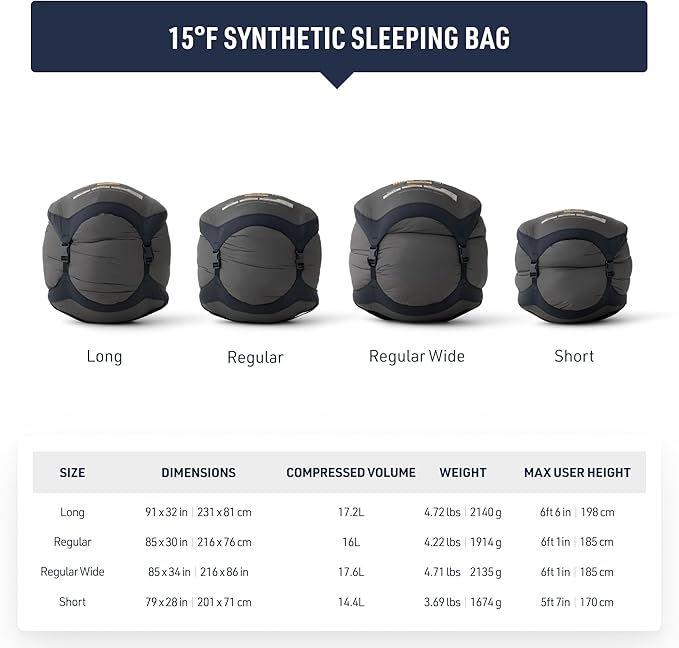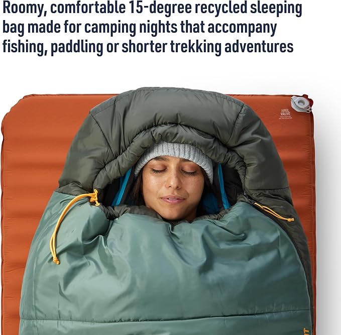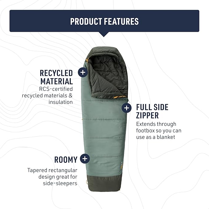 - Roomy, tapered rectangular synthetic sleeping bag ideal for side-sleepers; provides superior comfort and versatility for outdoor adventures like camping, fishing, trekking, and travel