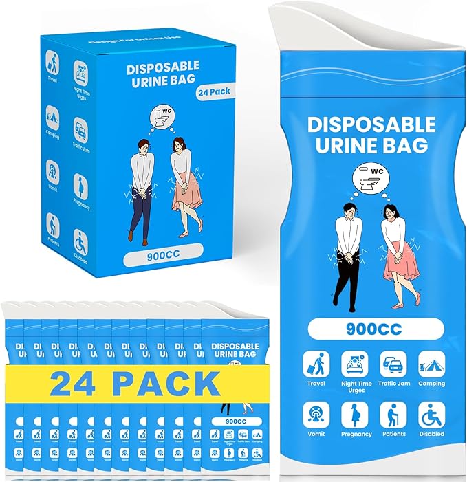 Disposable Urine Bags, 900ML Pee Bags for Women Men Emergency Use, 8/12/24 Pcs Unisex Urine Vomit Bag for Camping, Hiking, Traffic Jams, Road Trips, Pregnant, PatientsB0DSW1K1T1