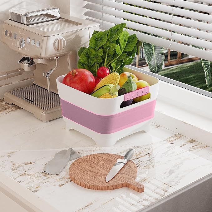 - 【Collapsible & Ultra-Durable】The dish basin maintains its space-saving foldable design, allowing you to adjust its size as needed and collapse it easily for storage, saving precious space. Dimensions remain the same—expanded size: 12.4 x 12 x 7.9(h) inches, collapsed: 2.8 inches—with an updated, sturdier build using superior plastics and silicone.