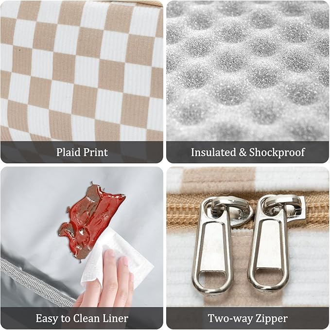 Insulated Lunch Bag for Women Men Large Reusable Lunch Box Adult Leakproof Portable Cooler Tote Bags for Work Picnic (khaki plaid)