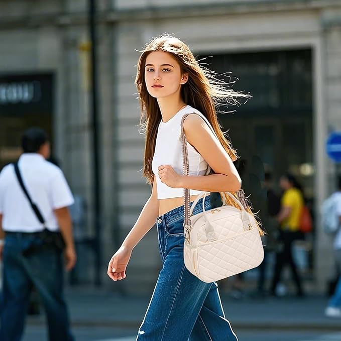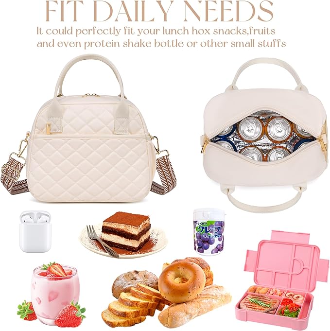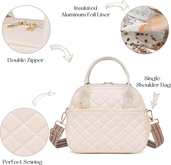 - 【FASHION ITEMS】The front of this lunchbox is designed with quilted. Simple and elegant design is a great item to pair with different clothes every day. It can blends in with your attire and isn’t too flashy or tacky. This bag looks good with purse and briefcase.
