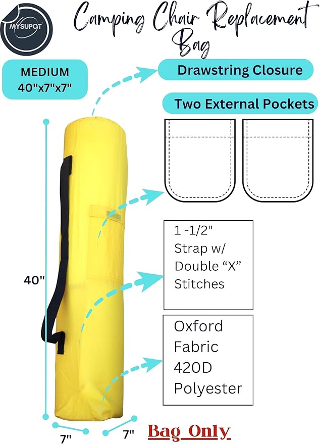 Replacement Bag for Folding Camping Chair, Portable Camp Chair, Hammock, Yoga Mat, Umbrella, Tents, Tripods, Fishing Poles - 420D Oxford Polyester FabricB0DTG41Z8K