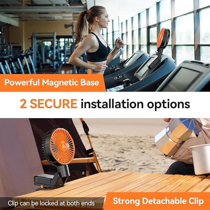 - 3 in 1 Magnetic & Clip Foiding Fan: Featuring detachable Clip & strong magnetic function, you can use it anywhere you want such as golf cart, baby stroller and on the table to keep your cooling