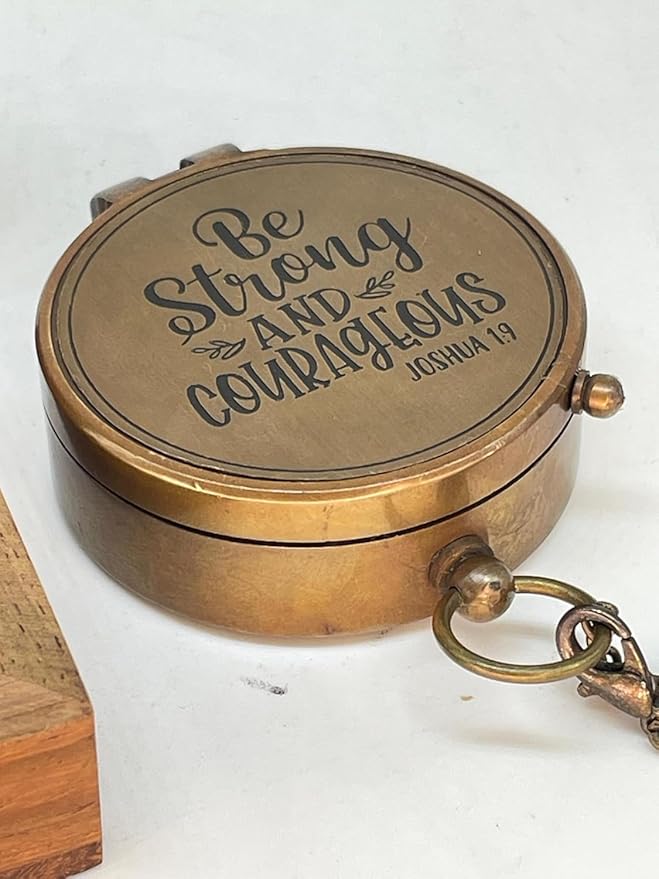 - 💡 ENGRAVED WITH INSPIRATION: This antique brass compass is engraved with the empowering quote "Be strong and courageous," making it a meaningful compass gift for men, travelers, and nautical enthusiasts. It’s a perfect keepsake for inspiration and motivation.