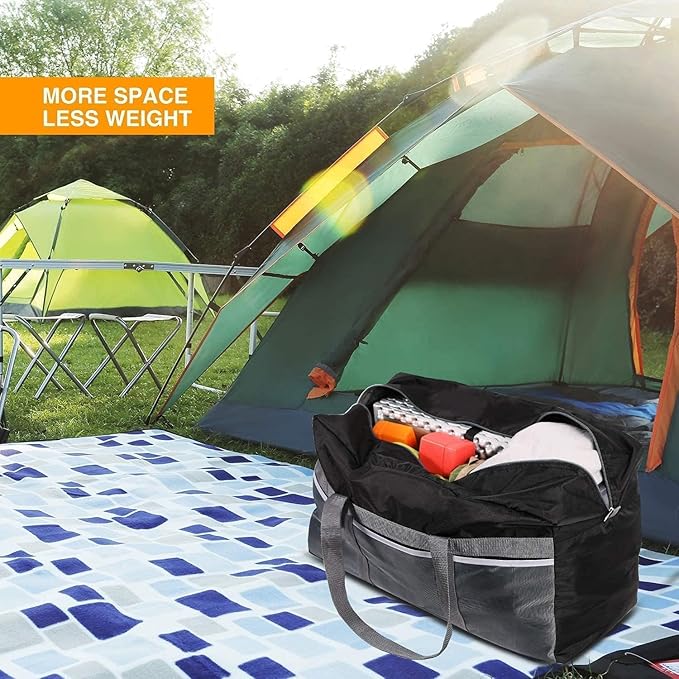 - Large Capacity and Lightweight: Up to 96L with dimensions of 80x30x40cm/31x12x16 inches (L x W x H); It can be folded into a compact carry pouch of 20x23 cm/ 8x9 inches ( L x W ). Weighs only 0.70 lbs.And 60lbs weight capacity.
