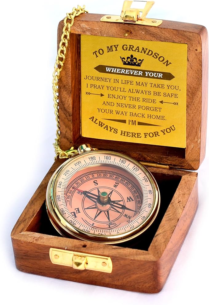 - Gift for Grandson from grandpa Grandma - Engraved Antique Style Brass Compass - Reinforcing & Reminder of Love & confidence for Grandson's Gift idea for boys on Birthday, Baptism, Confirmation, Graduation gift for Him, Boy from grandmother & grandfather