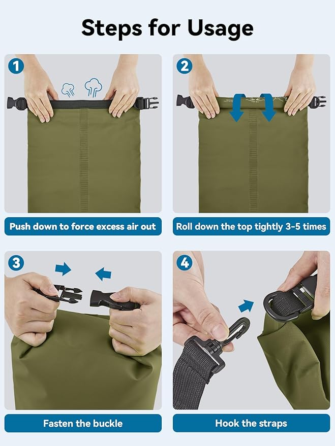 • Durable - Made of 0.02 in (0.5 mm) thick upgraded wear-resistant PVC material, it's suitable for all kinds of outdoor activities. Waterproof bag is well adapted to various weather and environment.