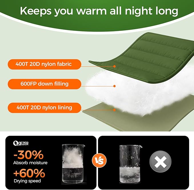 - Warm and comfortable: the sleeping bag is filled with 800g 600FP of down.Equipped with a hat draw rope and a two - way zipper, it can keep you warm even in cold conditions. The design temperature is 28°F - 45°F (-2°C - 7°C). Recommended extreme temperature: 18°F - 28°F.
