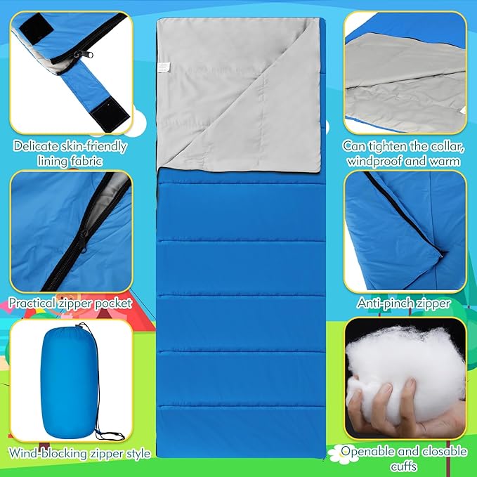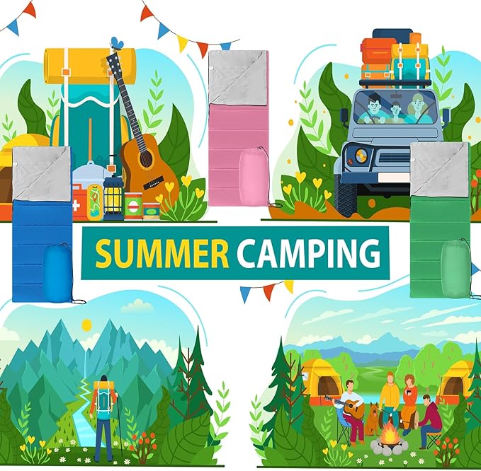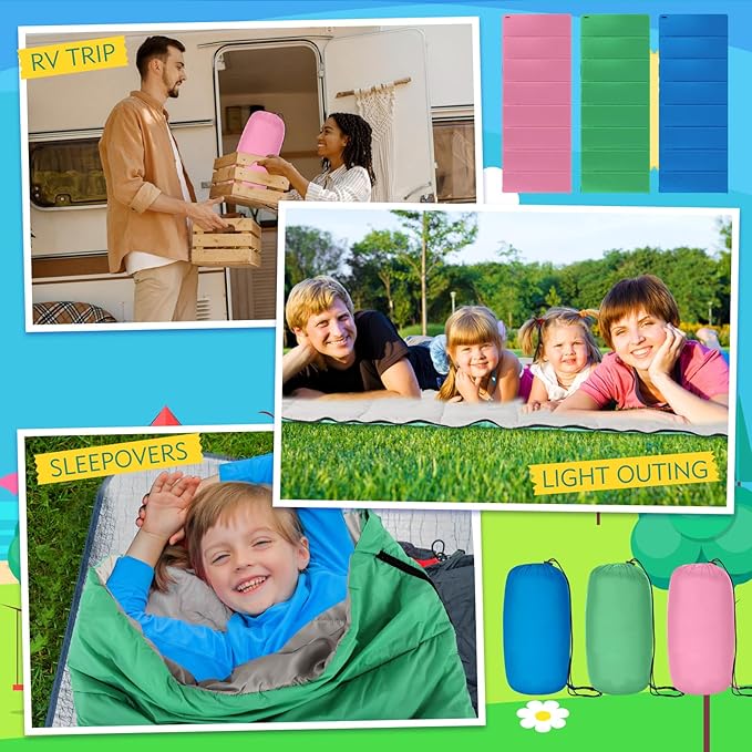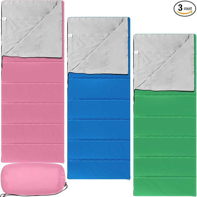 - Set Contents: this lightweight sleeping bag set contains 3 colors: blue, green, and pink, each measuring 75 x 30 inches, providing a spacious and comfortable sleeping space; Whether for personal use or camping with family and friends, the colors can be easily assigned to make outdoor trips more enjoyable