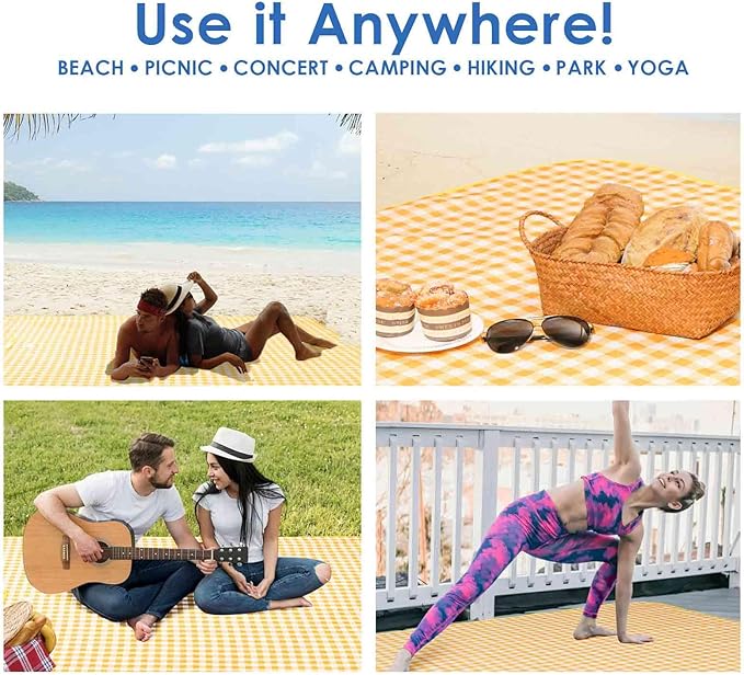 - MULTIFUNCTIONAL: This portable outdoor blanket can be used as a beach mat, camping blanket, family mat, RV blanket, emergency blanket. Not just outdoor blanket, it also serves as floor mat, kids playing mat, pet seat cover, a great item for every family