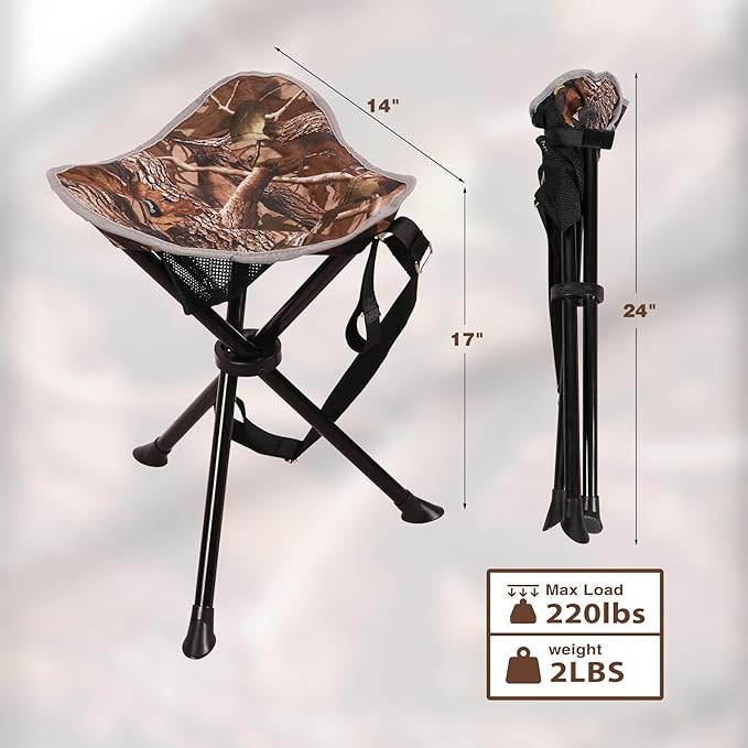 REDCAMP Folding Hunting Stool for Adult, Portable Lightweight 3 Legged Tripod Stool for Fishing Travel Backpacking Hunting Golf