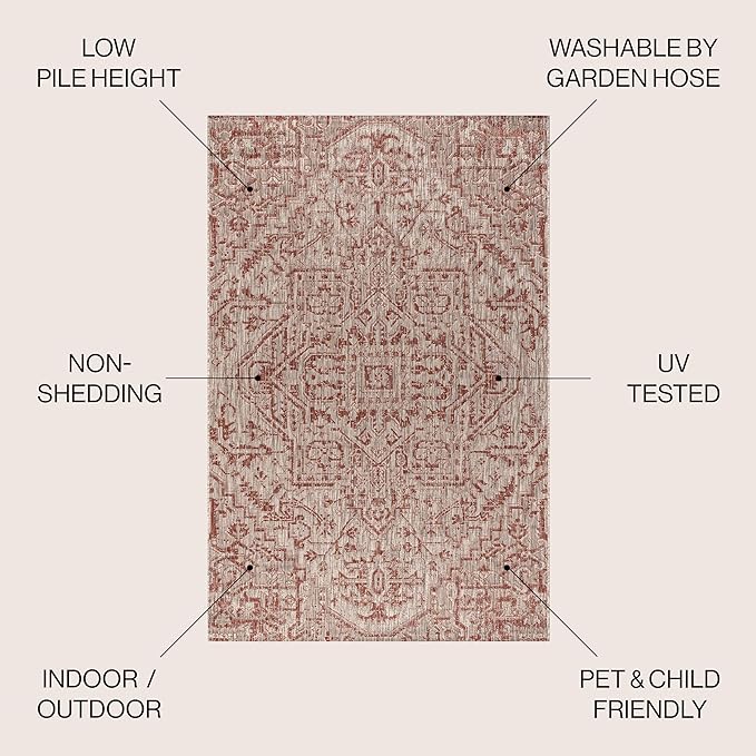JONATHAN Y SMB105A-6 Estrella Bohemian Medallion Textured Weave Red/Taupe 6 ft. x 9 ft. Indoor/Outdoor Area Rug, Pet Friendly, Non-Shedding, Stain Resistant, Easy-Cleaning for Backyard, Patio, Porch