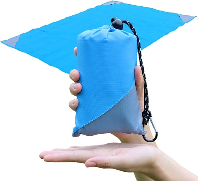 - Compact & Lightweight – This compact blanket can be folded to fit a small bag, it’s so handy even can be put in your pocket, it's also a ultralight tarp. Hook it onto your backpack, throw it in your bag or keep it in your car. It’s 7oz but a larger size. Carry it when you’re outdoors, it can be your small travel picnic blanket for festival, concert or backpacking etc, It’ll never be a burden.