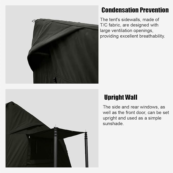 - Breathable Canvas Inflatable Tent: This inflatable camping tent is crafted from TC cotton fabric, offering superior durability, breathability, and eco-friendliness. Unlike Oxford tents, the TC cotton material reduces condensation, retains heat more effectively, and ensures a comfortable sleep by eliminating water condensation issues. With its sustainable design, this tent provides a more environmentally friendly alternative for those seeking a high-performance and reliable camping shelter.
