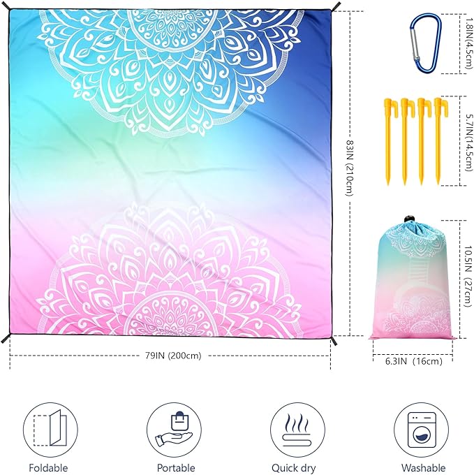 - 【Attractive Pattern Design】 Unique mandala, boho style and bold contrasting color beach mats will make you stand out on the beach! Enjoy the beach sunshine and leave unforgettable memories!