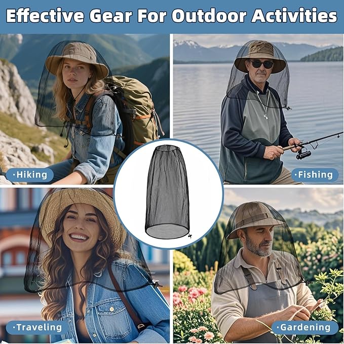 - Versatile Usage in Different Scenarios:Ideal for a variety of outdoor activities, this head net is perfect for fishing, hiking, traveling, and walking. It's also great for gardening, yard work, and camping. No matter where your outdoor adventures take you, this mosquito and bug head net will be your reliable companion.